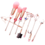 PROFESSIONAL MAKEUP BRUSH SET: 1 lip brush + 1 eyebrow brush + 2 eyeshadow brushes + 1 power brush + 2 blush brushes + 1 eyebrow comb + 1 drawstring bag. Each set packed into a cute pink velour pouch can protect your brush perfectly when traveling.
